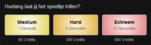 Door op de knop ‘medium’ te drukken, trilt het speeltje 1 seconde. De tweede knop ‘hard’ laat de toy 6 seconden trillen en wil je de dame eens even lekker spuitend laten klaarkomen, dan ram je op de knop ‘extreem’. Die is goed voor 12 seconden trillen! Ik gunde Miss70 de 12 hele seconden, maar dat grapje kostte me 600 credits, dat is omgerekend zo’n 6 euro. ZES EURO voor een beetje trillen!!! Ik hoorde in mijn hoofd opeens de stem van mijn opa, die zei (met kraakstem): “Jongen, ken je dat spreekwoord? Iemand geld uit de zak trillen!” Opa had gelijk. Toch wilde ik Miss70 graag verwennen (want oma zei altijd: “Knaap, zorg goed voor de vrouwtjes! Zij zijn het waard!”). Kortom, Miss70 moest het van mij doen met 1 seconde. Een heel vlug vluggertje! Ik drukte op de ‘medium’-knop waarna de vibrator even kort begon te trillen.